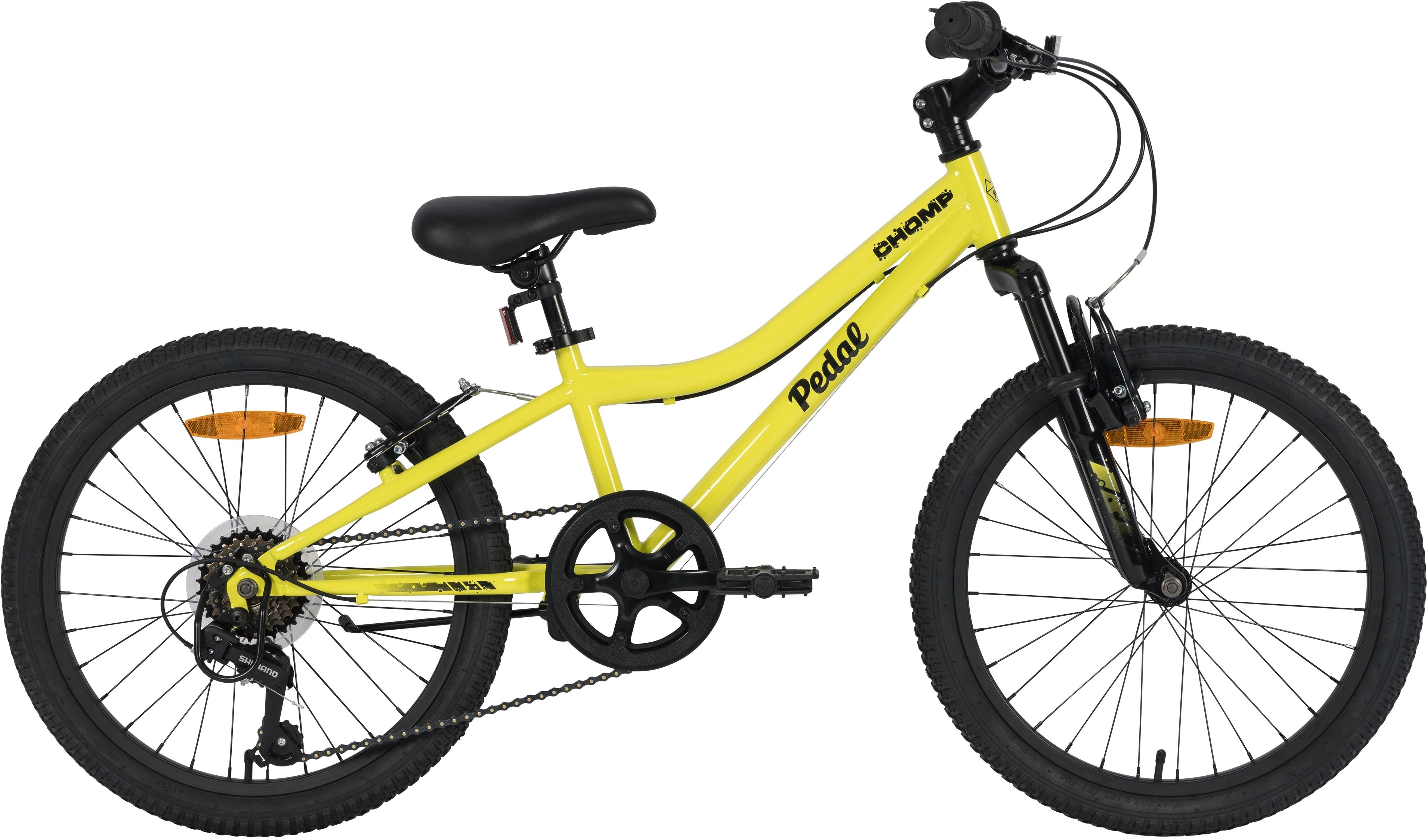 With a Shimano 7-speed gearset, this bike provides an easy entry into kids new to shifting thanks to its grip shifter. The Chomp was designed with smaller riders in mind and features loads of youth-specific components: the front and rear v-brakes are designed with youth-specific brake levers making it easier for smaller riders to rea. . .