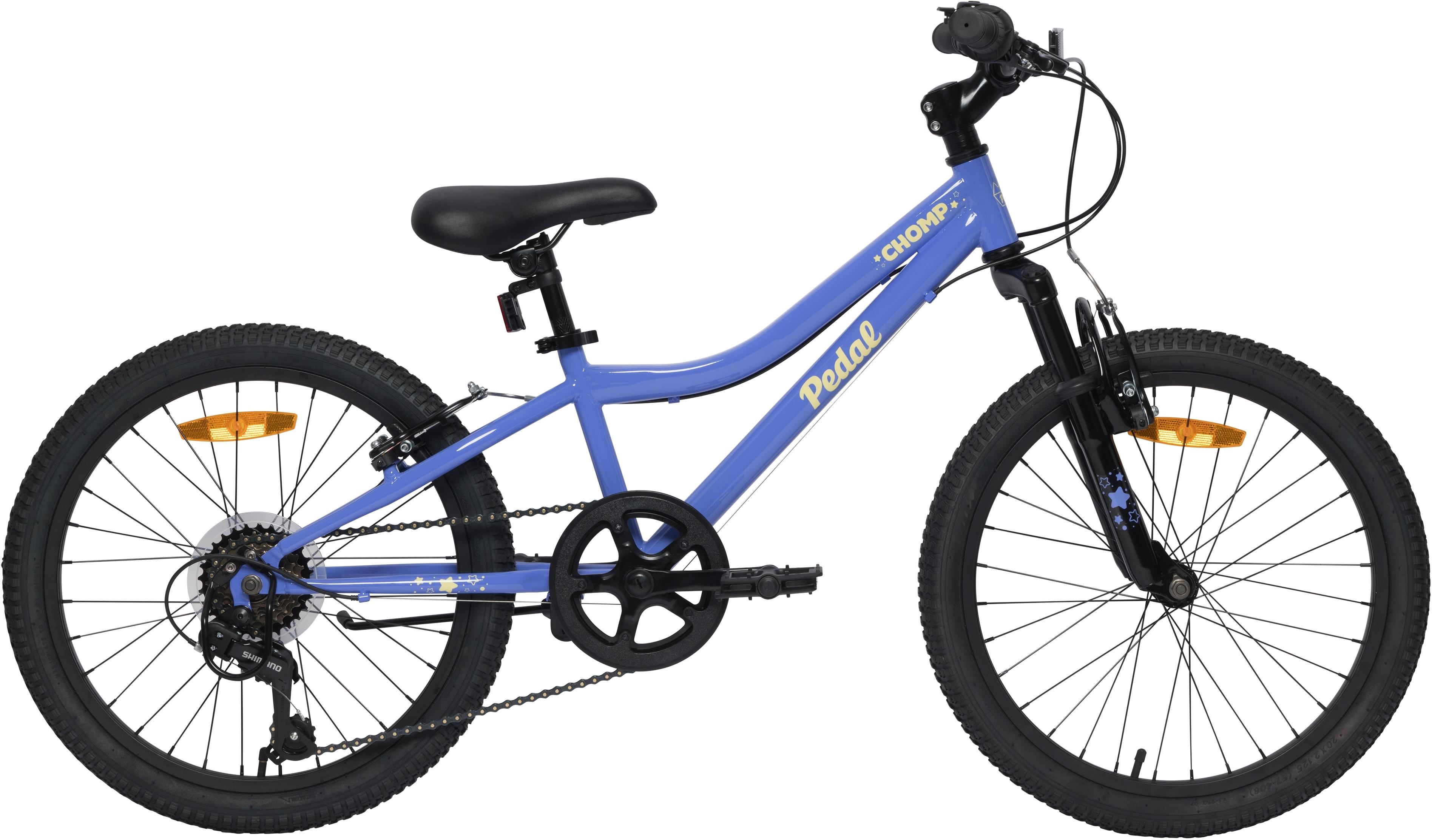 With a Shimano 7-speed gearset, this bike provides an easy entry into kids new to shifting thanks to its grip shifter. The Chomp was designed with smaller riders in mind and features loads of youth-specific components: the front and rear v-brakes are designed with youth-specific brake levers making it easier for smaller riders to rea. . .