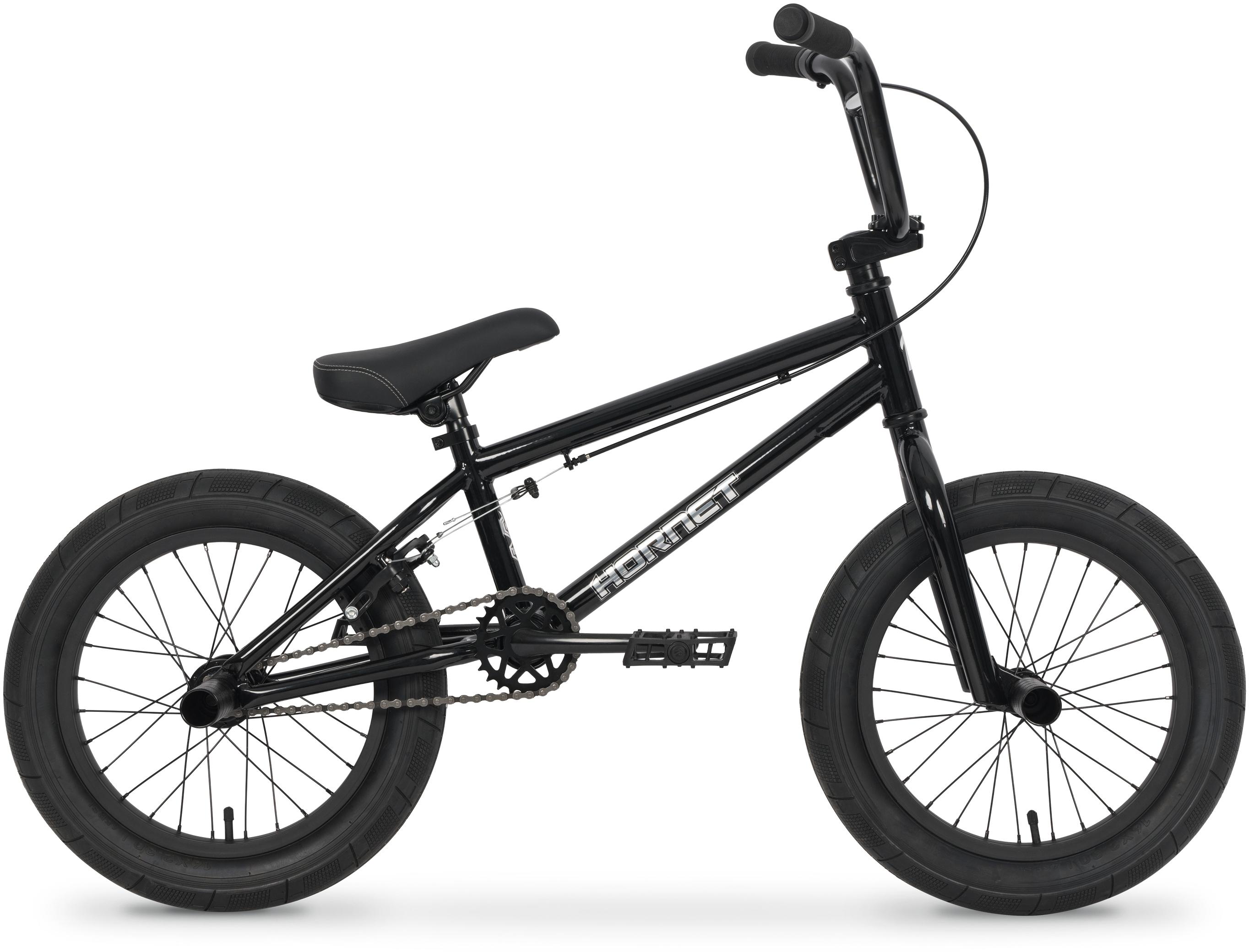 The Pedal Hornet 2 16" BMX Bike is a tough and reliable street-style bike designed for young riders who want to explore their urban environment. Built with a durable steel frame and Hi-Ten steel fork, this bike is made to handle the rigors of BMX riding. Featuring a single-speed drivetrain and BMX riser handlebars, it delivers a smooth, controlled ride. With two stunt pegs included, the Pedal Hornet 2 is ready for tricks and stunts, giving kids a fun and adventurous r. . .